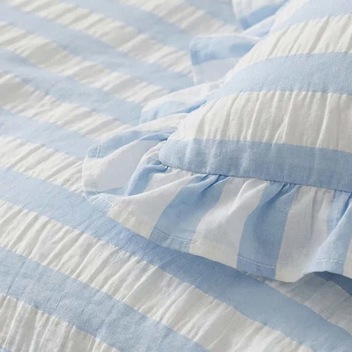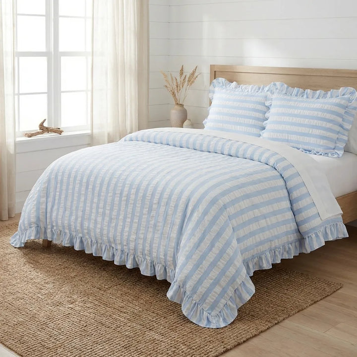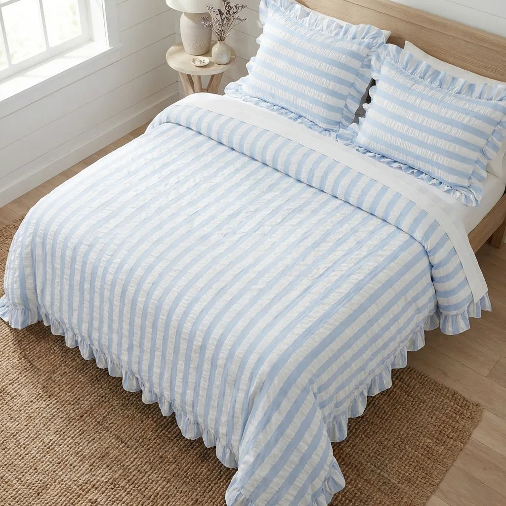 Baby Blue Seersucker Duvet Cover with Ruffle
