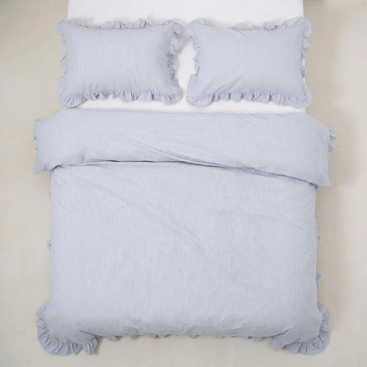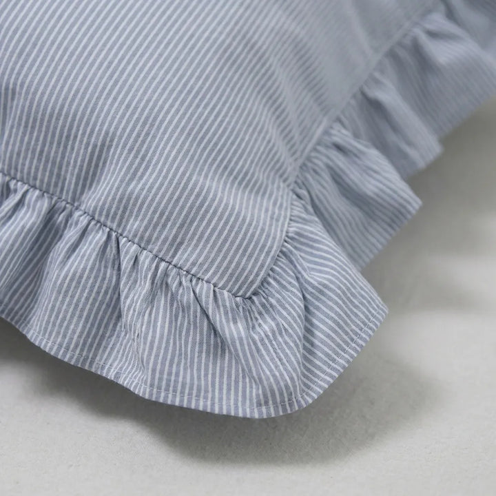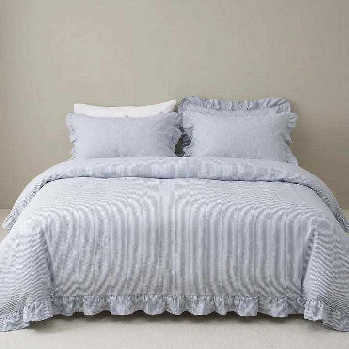 Retro Striped Duvet Cover with Ruffle