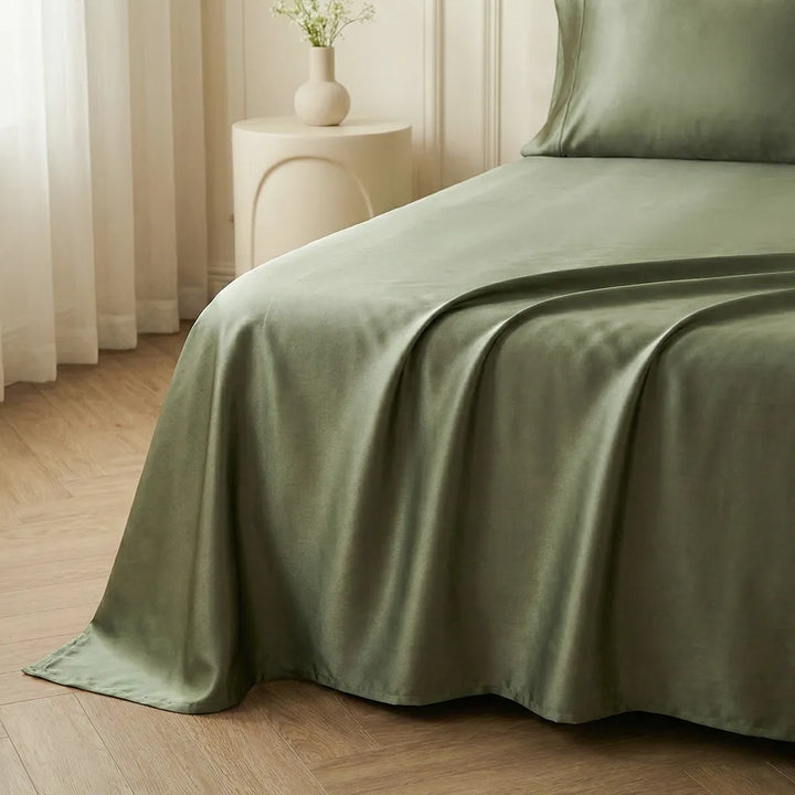 The classic emerald color of our silk sheet isn't just beautiful-it promotes a feeling of calm and purity in your bedroom. Imagine slipping into the cool, gentle embrace of silk after a long day and letting the stress melt away. Whether it's a lazy Sunday morning in bed or a peaceful night's sleep, our white silk sheet adds a touch of everyday luxury to your life.