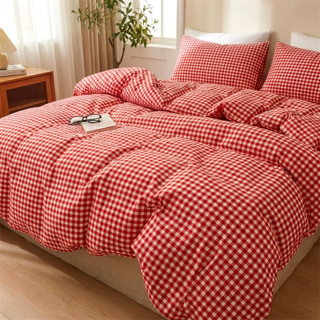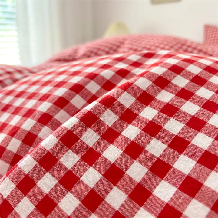 Vintage Red Gingham Duvet Cover